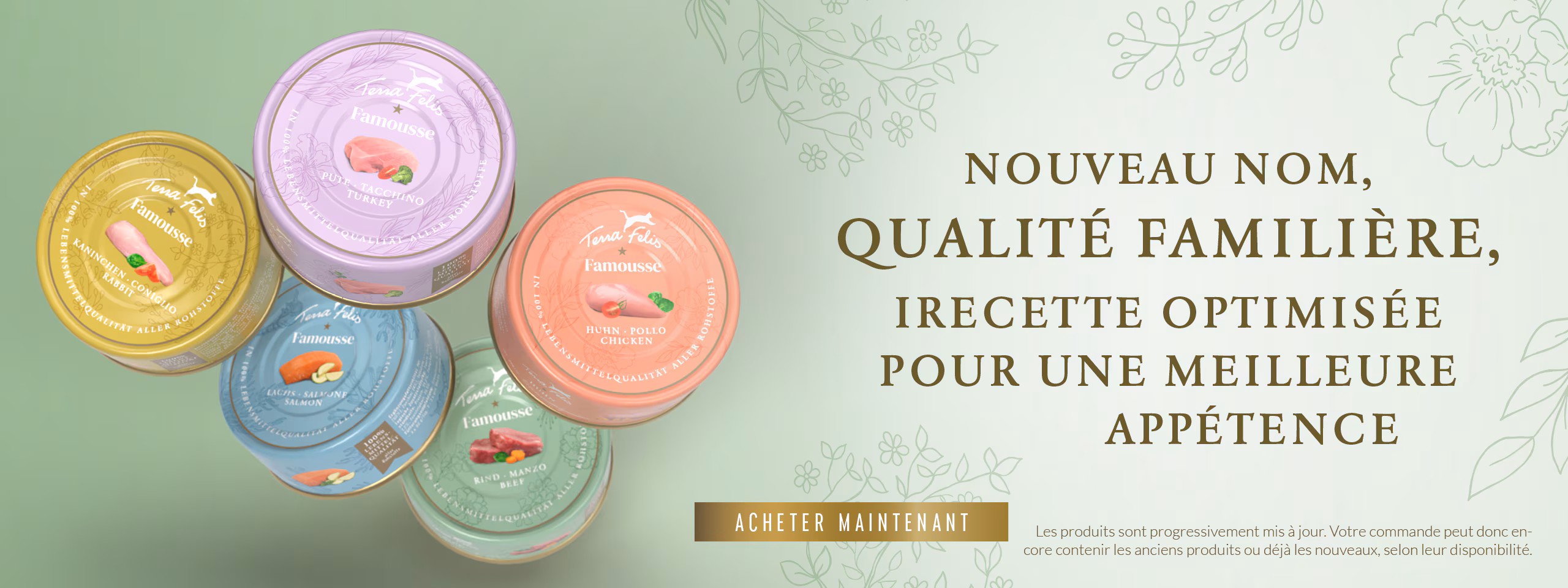 Terra Felis est disponible en portions individuelles de 80 g ou en boîtes de 200 g et propose un choix de dix menus pour les chats adultes. Vous pouvez les découvrir et les commander dans notre boutique en ligne afin de vous rendre compte par vous-même de leurs qualités exceptionnelles.