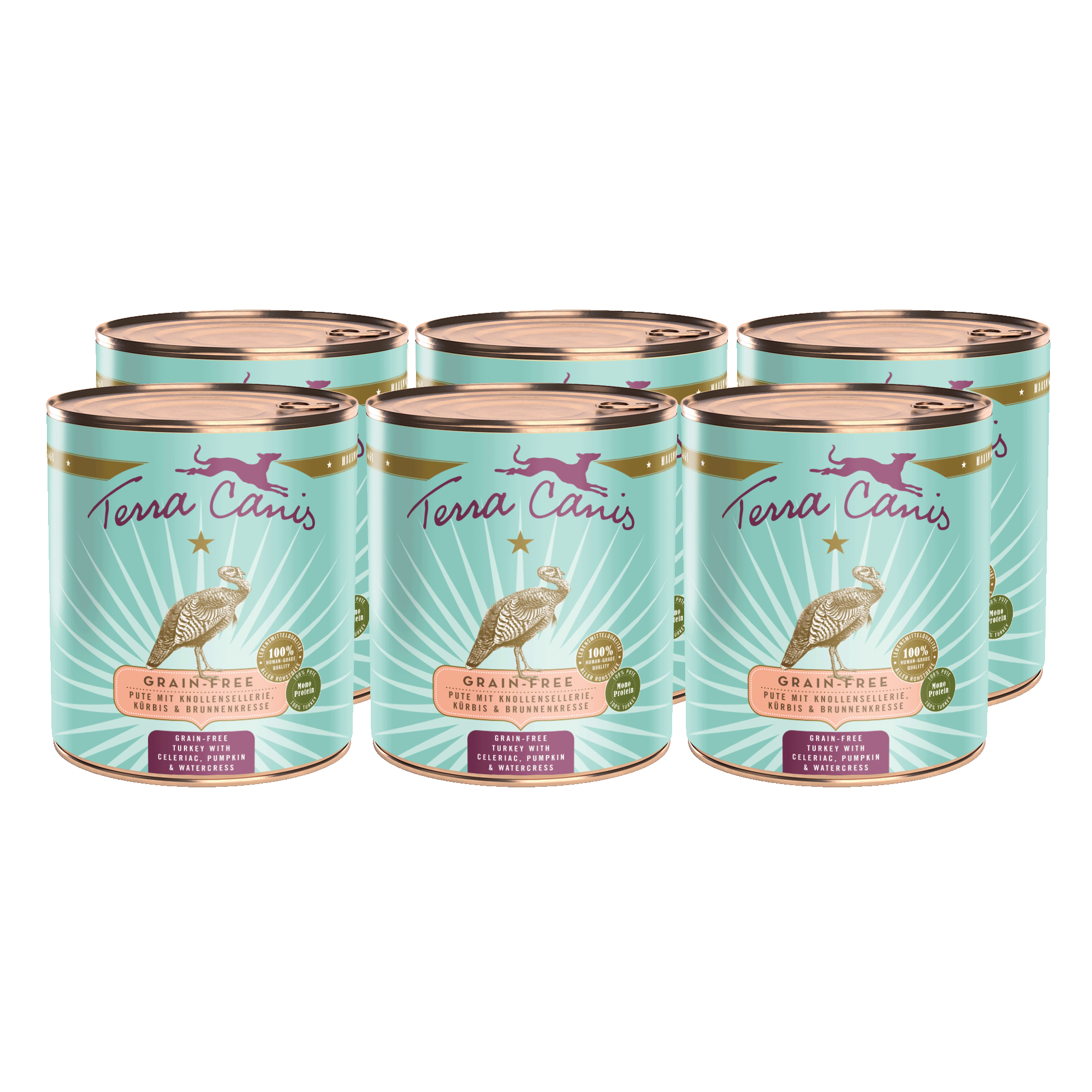 Terra Canis GETREIDEFREI-Menüs weisen einen hohen Fleischanteil auf, ergänzt durch viel gesundes, ballaststoffreiches Gemüse, Obst und Kräuter. Zusätze wie Seealge, Mineralerde, Blütenpollen, Andensalz und Bierhefe liefern zahlreiche, natürliche Vitamine und Mineralstoffe. Das enthaltene hochverdauliche, cholesterin- und glutenfreie Kokosmehl ist ein wahres Wundermehl. Es gilt als eine der ergiebigsten Ballaststoffquellen, ist sanft zum Darm und enthält ein breites Angebot an wichtigen Aminosäuren. Rapsöl mit seinem hohen Gehalt an Omega-3-Fettsäuren rundet die GETREIDEFREI-Menüs ideal ab. Geeignet sind diese Menüs für alle gesunden Hunde, deren Halter auf eine artgerechte, getreidefreie Ernährung setzen, sowie für Hunde mit Unverträglichkeiten gegen Getreide bzw. für Hunde, die aus medizinischen Gründen getreidefrei ernährt werden sollten.